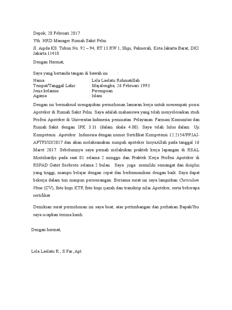 Contoh Surat Lamaran Di Pelni / 3 Contoh Surat Lamaran Kerja Perawat Di Rumah Sakit Pns Non Pns - Contoh surat lamaran kerja dalam bahasa inggris i.
